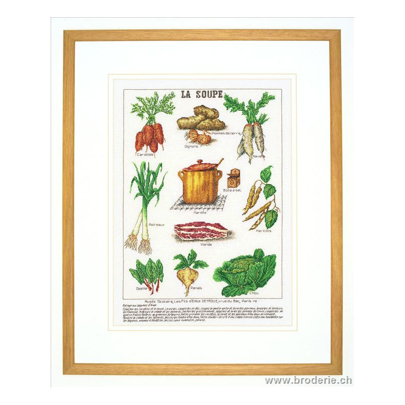 L'article 'Thea Gouverneur, kit la soupe aux légumes (G3027)' fait partie de notre assortiment depuis le 30 janvier 2019. La gamme Thea Gouverneur est une très belle et riche gamme hollandaise de points de croix comptés. Les kits proposés sur du lin sont tous disponibles sur aïda sur demande, au même tarif. La gamme propose de très grands tableaux à divers thèmes, notamment floraux, sportifs, et aussi de belles villes en couleurs. Vous trouverez aussi de véritables photos de fleurs et de fruits, cieux bleus ou orageux.