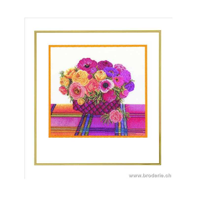L'article 'Thea Gouverneur, kit panier de Renoncules (G3044)' fait partie de notre assortiment depuis le 9 avril 2010. La gamme Thea Gouverneur est une très belle et riche gamme hollandaise de points de croix comptés. Les kits proposés sur du lin sont tous disponibles sur aïda sur demande, au même tarif. La gamme propose de très grands tableaux à divers thèmes, notamment floraux, sportifs, et aussi de belles villes en couleurs. Vous trouverez aussi de véritables photos de fleurs et de fruits, cieux bleus ou orageux.