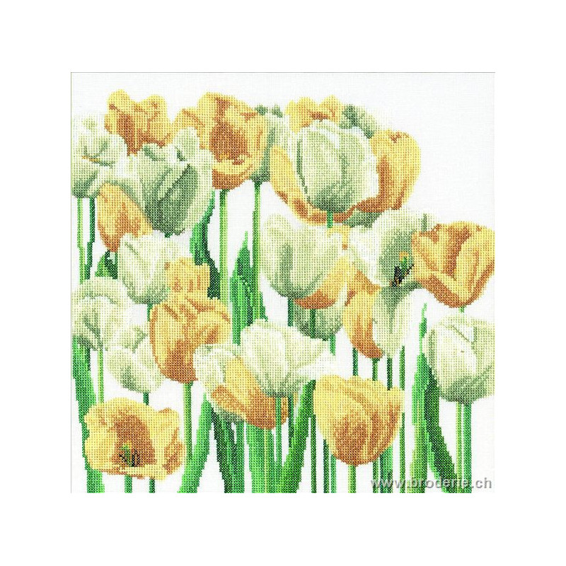 L'article 'Thea Gouverneur, kit Tulipes jaunes (G3065)' fait partie de notre assortiment depuis le 9 avril 2010. La gamme Thea Gouverneur est une très belle et riche gamme hollandaise de points de croix comptés. Les kits proposés sur du lin sont tous disponibles sur aïda sur demande, au même tarif. La gamme propose de très grands tableaux à divers thèmes, notamment floraux, sportifs, et aussi de belles villes en couleurs. Vous trouverez aussi de véritables photos de fleurs et de fruits, cieux bleus ou orageux.
