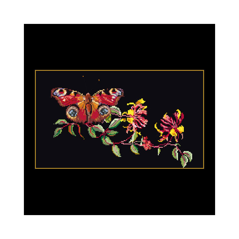 L'article 'Thea Gouverneur, kit papillon et chèvrefeuille (G0439.05)' fait partie de notre assortiment depuis le 8 juin 2011. La gamme Thea Gouverneur est une très belle et riche gamme hollandaise de points de croix comptés. Les kits proposés sur du lin sont tous disponibles sur aïda sur demande, au même tarif. La gamme propose de très grands tableaux à divers thèmes, notamment floraux, sportifs, et aussi de belles villes en couleurs. Vous trouverez aussi de véritables photos de fleurs et de fruits, cieux bleus ou orageux.