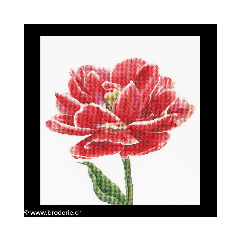 L'article 'Thea Gouverneur, kit Red/White edged Early double tulip (G0520)' fait partie de notre assortiment depuis le 27 février 2015. La gamme Thea Gouverneur est une très belle et riche gamme hollandaise de points de croix comptés. Les kits proposés sur du lin sont tous disponibles sur aïda sur demande, au même tarif. La gamme propose de très grands tableaux à divers thèmes, notamment floraux, sportifs, et aussi de belles villes en couleurs. Vous trouverez aussi de véritables photos de fleurs et de fruits, cieux bleus ou orageux.