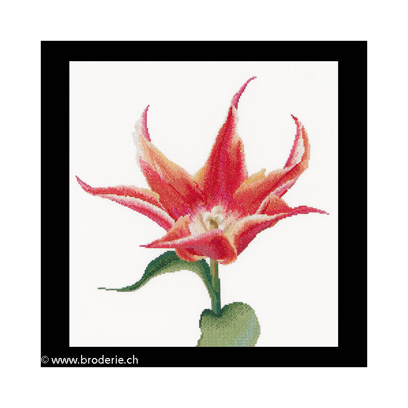 L'article 'Thea Gouverneur, kit Red/Orange Lily flowering tulip (G0524)' fait partie de notre assortiment depuis le 27 février 2015. La gamme Thea Gouverneur est une très belle et riche gamme hollandaise de points de croix comptés. Les kits proposés sur du lin sont tous disponibles sur aïda sur demande, au même tarif. La gamme propose de très grands tableaux à divers thèmes, notamment floraux, sportifs, et aussi de belles villes en couleurs. Vous trouverez aussi de véritables photos de fleurs et de fruits, cieux bleus ou orageux.