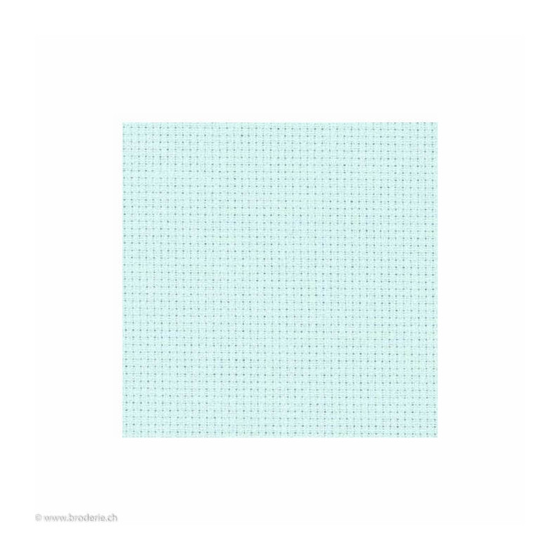 Zweigart, Aïda 14, 5,4 points/ cm bleu pâle (art. 3706-550). Trame 100% coton, 5.4 pts/cm, lavable en machine à 60°C, ctoton DMC correspondant numéro 162. Prix pour 10 cm, minimum à commander: 50 cm (indiquez 5 comme quantité pour 50 cm, 6 pour 60 cm, etc...).