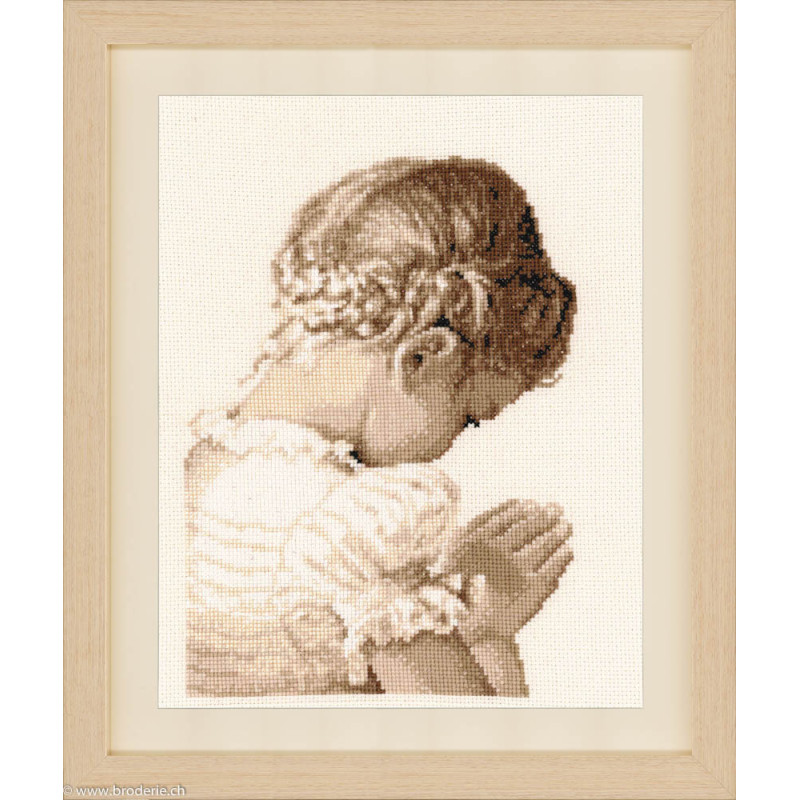 L'article 'Vervaco, kit Fille en prière (PN0158511)' fait partie de notre assortiment depuis le 14 juillet 2021. Vervaco est un fabricant belge de kits au point de croix, au point noué, aux points comptés, et propose aussi de sympathiques kits pour les enfants. Ils sont de réalisation relativement faciles : pas de quart de point, dessins et diagrammes très clairs, beaucoup de thèmes abordés (paysage , fleurs , mariage,et particulièrement kits de naissances, toises et Disney).