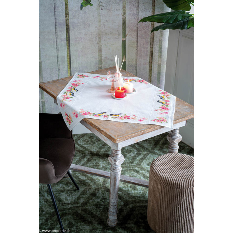 L'article 'Vervaco, kit nappe Mésanges et fleurs (PN0164365)' fait partie de notre assortiment depuis le 14 juillet 2021. Vervaco est un fabricant belge de kits au point de croix, au point noué, aux points comptés, et propose aussi de sympathiques kits pour les enfants. Ils sont de réalisation relativement faciles : pas de quart de point, dessins et diagrammes très clairs, beaucoup de thèmes abordés (paysage , fleurs , mariage,et particulièrement kits de naissances, toises et Disney).