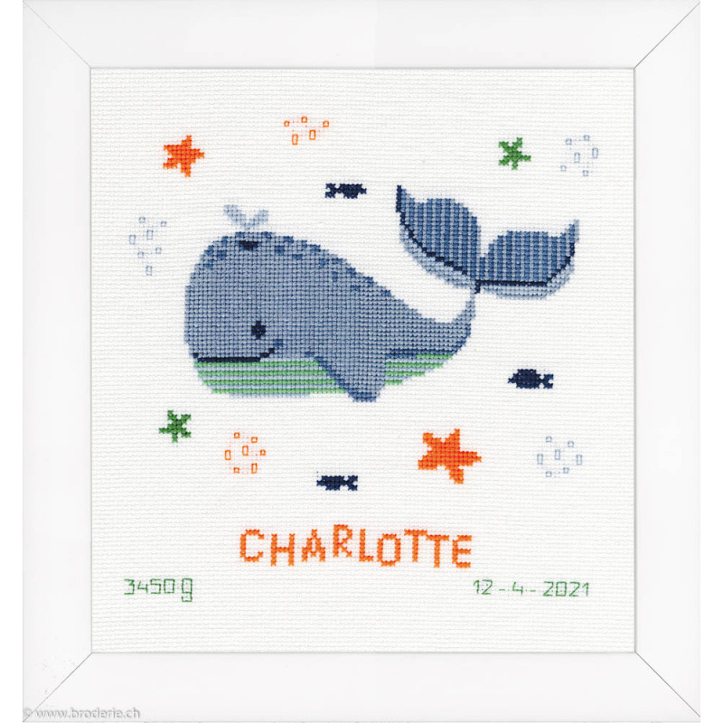 L'article 'Vervaco, Kit naissance plaisir des baleines (PN0191830)' fait partie de notre assortiment depuis le 15 novembre 2021. Vervaco est un fabricant belge de kits au point de croix, au point noué, aux points comptés, et propose aussi de sympathiques kits pour les enfants. Ils sont de réalisation relativement faciles : pas de quart de point, dessins et diagrammes très clairs, beaucoup de thèmes abordés (paysage , fleurs , mariage,et particulièrement kits de naissances, toises et Disney).