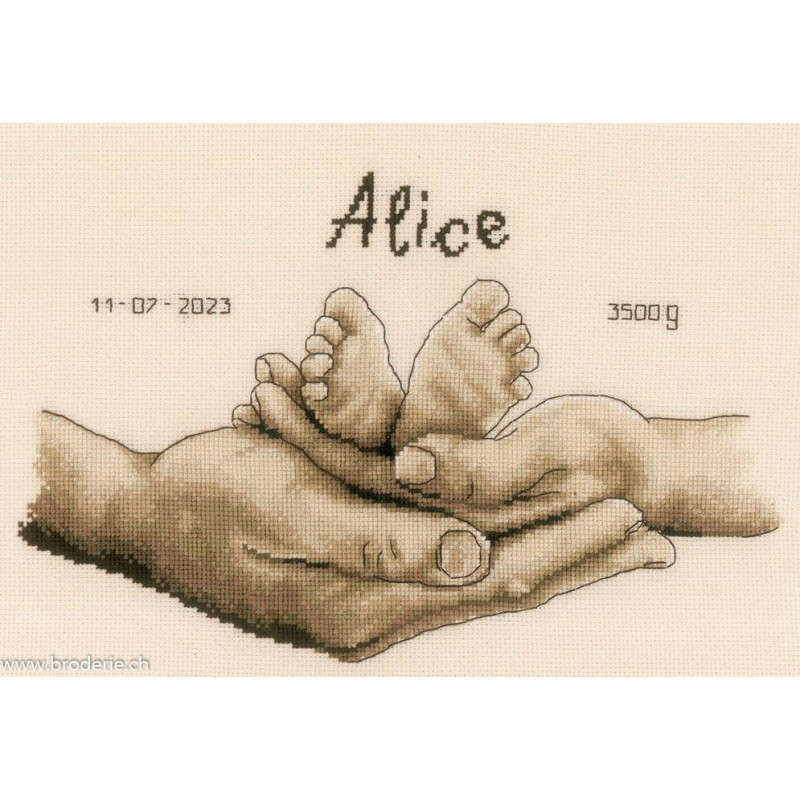 L'article 'Vervaco, Kit naissance Mains et pieds de bébé (PN0202331)' fait partie de notre assortiment depuis le 10 juin 2023. Vervaco est un fabricant belge de kits au point de croix, au point noué, aux points comptés, et propose aussi de sympathiques kits pour les enfants. Ils sont de réalisation relativement faciles : pas de quart de point, dessins et diagrammes très clairs, beaucoup de thèmes abordés (paysage , fleurs , mariage,et particulièrement kits de naissances, toises et Disney).