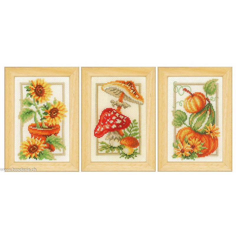 L'article 'Vervaco, kit 3 kits automnaux (PN0147594)' fait partie de notre assortiment depuis le 20 juillet 2023. Vervaco est un fabricant belge de kits au point de croix, au point noué, aux points comptés, et propose aussi de sympathiques kits pour les enfants. Ils sont de réalisation relativement faciles : pas de quart de point, dessins et diagrammes très clairs, beaucoup de thèmes abordés (paysage , fleurs , mariage,et particulièrement kits de naissances, toises et Disney).