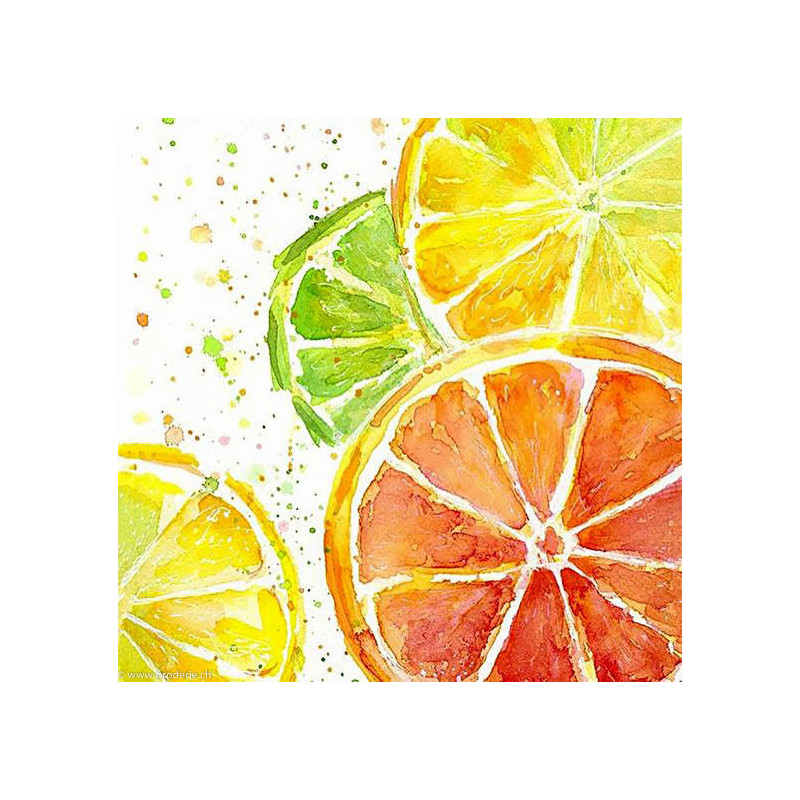 Wizardi, kit diamant Citrus Mix (art. WIWD289). Dimensions: 20 x 20 cm. Kit complet de Broderie Diamant comprenant la toile adhésive imprimée à recouvrir de strass, les sachets de strass 'diamants' triés par couleurs, un stylet et sa cire, un réceptacle et les explications. La totalité de la surface est à recouvrir. ATTENTION, ce n'est pas une broderie, pas de fil ni d'aiguille, mais une mosaïque.