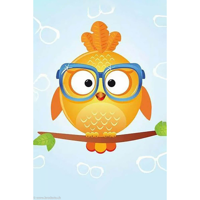 Wizardi, kit diamant Owl Leo (art. WIWD249). Dimensions: 20 x 30 cm. Kit complet de Broderie Diamant comprenant la toile adhésive imprimée à recouvrir de strass, les sachets de strass 'diamants' triés par couleurs, un stylet et sa cire, un réceptacle et les explications. La totalité de la surface est à recouvrir. ATTENTION, ce n'est pas une broderie, pas de fil ni d'aiguille, mais une mosaïque.