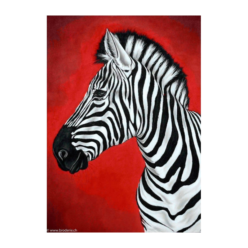 Wizardi, kit diamant Zebra (art. WIWD080). Dimensions: 27 x 38 cm. Kit complet de Broderie Diamant comprenant la toile adhésive imprimée à recouvrir de strass, les sachets de strass 'diamants' carrés triés par couleurs, un stylet et sa cire, un réceptacle et les explications. La totalité de la surface est à recouvrir. ATTENTION, ce n'est pas une broderie, pas de fil ni d'aiguille, mais une mosaïque.