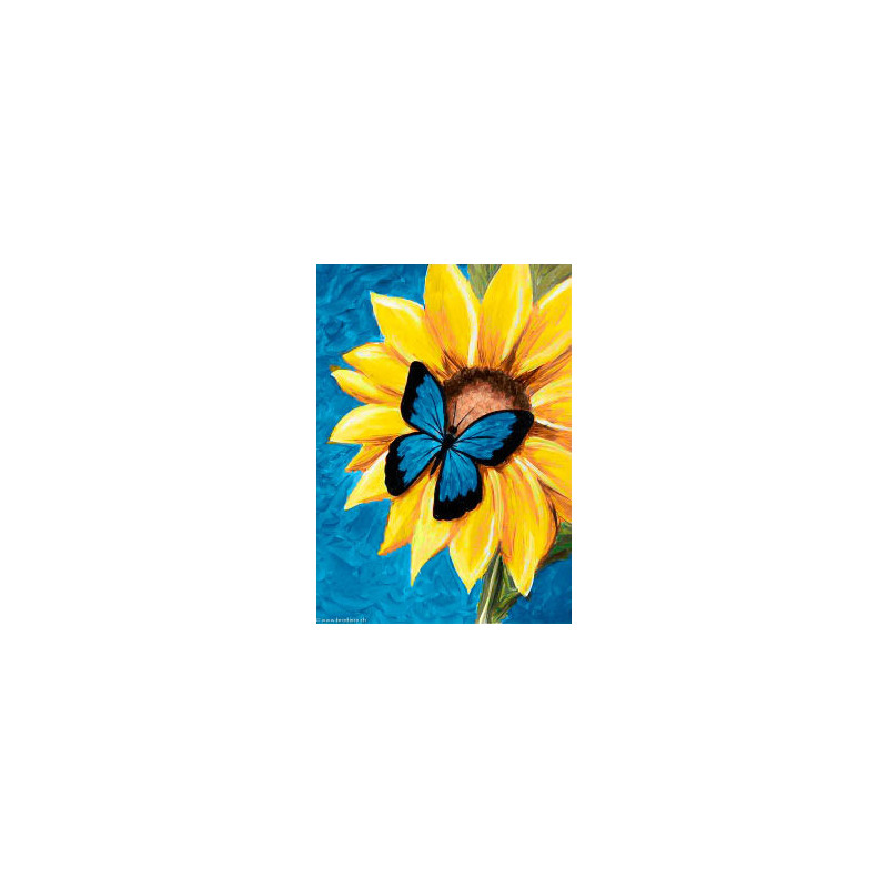 Wizardi, kit diamant Butterfly and Sunflower (art. WIWD031). Dimensions: 27 x 38 cm. Kit complet de Broderie Diamant comprenant la toile adhésive imprimée à recouvrir de strass, les sachets de strass 'diamants' carrés triés par couleurs, un stylet et sa cire, un réceptacle et les explications. La totalité de la surface est à recouvrir. ATTENTION, ce n'est pas une broderie, pas de fil ni d'aiguille, mais une mosaïque.