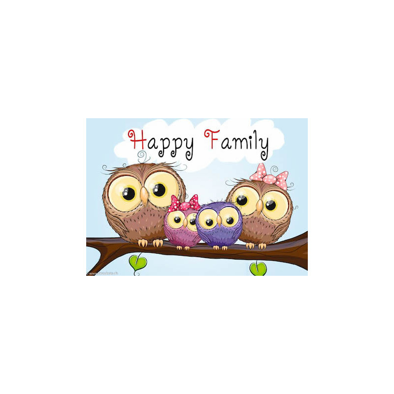 Wizardi, kit diamant Owl Family (art. WIWD2319). Dimensions: 38 x 27 cm. Kit complet de Broderie Diamant comprenant la toile adhésive imprimée à recouvrir de strass, les sachets de strass 'diamants' triés par couleurs, un stylet et sa cire, un réceptacle et les explications. La totalité de la surface est à recouvrir. ATTENTION, ce n'est pas une broderie, pas de fil ni d'aiguille, mais une mosaïque.