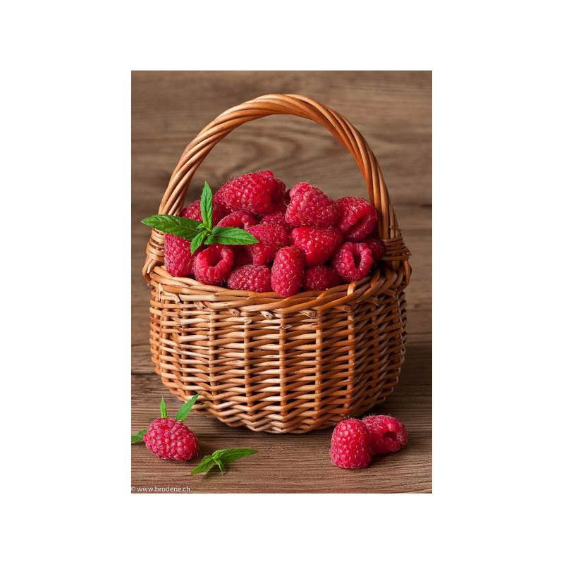 Wizardi, kit diamant Raspberry Basket (art. WIWD252). Dimensions: 27 x 38 cm. Kit complet de Broderie Diamant comprenant la toile adhésive imprimée à recouvrir de strass, les sachets de strass 'diamants' carrés triés par couleurs, un stylet et sa cire, un réceptacle et les explications. La totalité de la surface est à recouvrir. ATTENTION, ce n'est pas une broderie, pas de fil ni d'aiguille, mais une mosaïque.