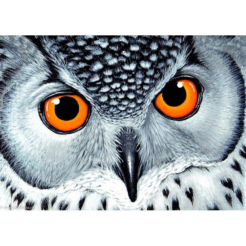 Wizardi, kit diamant Owl's Look (art. WIWD243). Dimensions: 38 x 27 cm. Kit complet de Broderie Diamant comprenant la toile adhésive imprimée à recouvrir de strass, les sachets de strass 'diamants' triés par couleurs, un stylet et sa cire, un réceptacle et les explications. La totalité de la surface est à recouvrir. ATTENTION, ce n'est pas une broderie, pas de fil ni d'aiguille, mais une mosaïque.