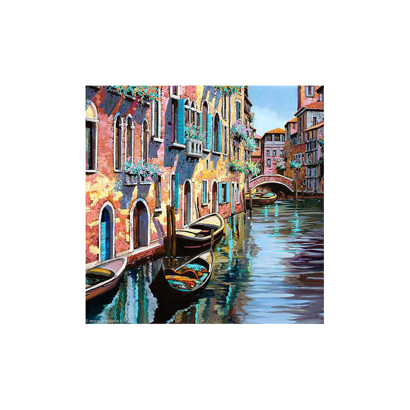Wizardi, kit diamant Venice (art. WIWD315). Dimensions: 40 x 40 cm. Kit complet de Broderie Diamant comprenant la toile adhésive imprimée à recouvrir de strass, les sachets de strass 'diamants' carrés triés par couleurs, un stylet et sa cire, un réceptacle et les explications. La totalité de la surface est à recouvrir. ATTENTION, ce n'est pas une broderie, pas de fil ni d'aiguille, mais une mosaïque.
