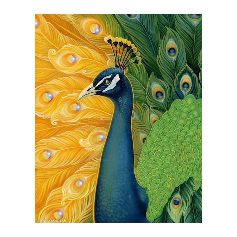 Wizardi, kit diamant Peacock (art. WIWD313). Dimensions: 40 x 50 cm. Kit complet de Broderie Diamant comprenant la toile adhésive imprimée à recouvrir de strass, les sachets de strass 'diamants' carrés triés par couleurs, un stylet et sa cire, un réceptacle et les explications. La totalité de la surface est à recouvrir. ATTENTION, ce n'est pas une broderie, pas de fil ni d'aiguille, mais une mosaïque.