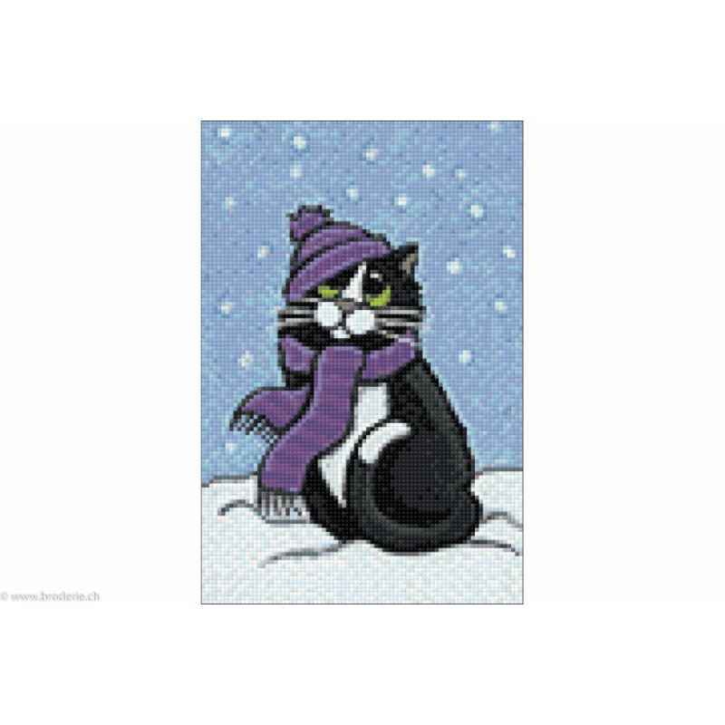 Wizardi, kit diamant Winter Cat (art. WIWD2321). Dimensions: 20 x 30 cm. Kit complet de Broderie Diamant comprenant la toile adhésive imprimée à recouvrir de strass, les sachets de strass 'diamants' carrés triés par couleurs, un stylet et sa cire, un réceptacle et les explications. La totalité de la surface est à recouvrir. ATTENTION, ce n'est pas une broderie, pas de fil ni d'aiguille, mais une mosaïque.