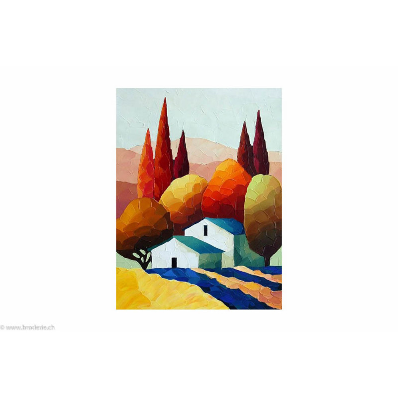 Wizardi, kit diamant Landscape (art. WIWD2364). Dimensions: 15 x 20 cm. Kit complet de Broderie Diamant comprenant la toile adhésive imprimée à recouvrir de strass, les sachets de strass 'diamants' carrés triés par couleurs, un stylet et sa cire, un réceptacle et les explications. La totalité de la surface est à recouvrir. ATTENTION, ce n'est pas une broderie, pas de fil ni d'aiguille, mais une mosaïque.