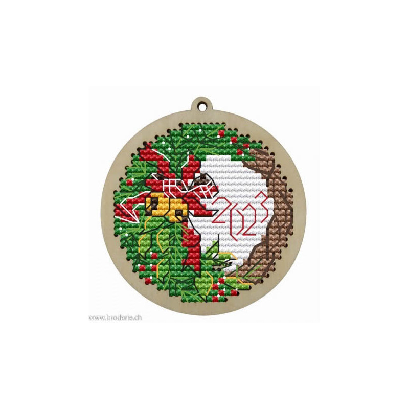 Wizardi, kit Kind fox - Christmas Ball Winter (art. WDKF022-8-5). Dimensions: 6.5 x 7 cm. Broderie de points de croix comptés 5.5 points/cm sur support en bois, à pendre ou à poser. Dans la même collection WDKF0et numéro.