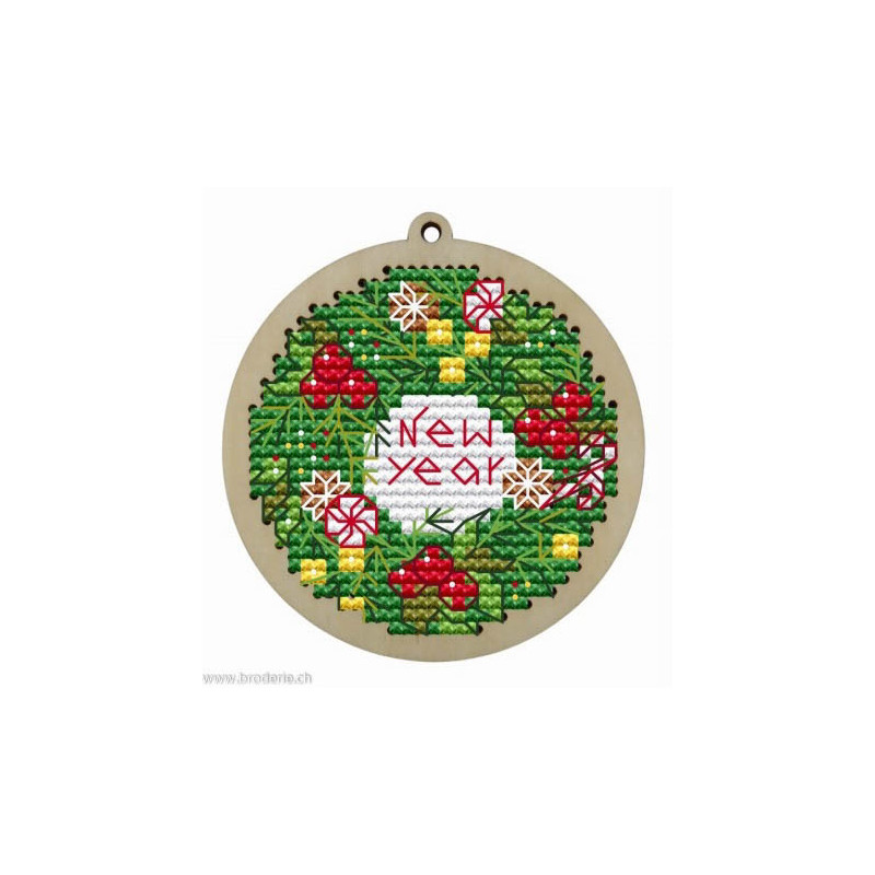 Wizardi, kit Kind fox - Christmas Ball New year (art. WDKF022-8-4). Dimensions: 6.5 x 7 cm. Broderie de points de croix comptés 5.5 points/cm sur support en bois, à pendre ou à poser. Dans la même collection WDKF0et numéro.