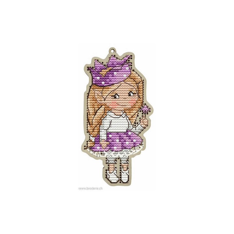 Wizardi, kit Kind fox - Fairy Princess (art. WDKF022-76). Dimensions: 6 x 11.5 cm. Broderie de points de croix comptés 5.5 points/cm sur support en bois, à pendre ou à poser. Dans la même collection WDKF0et numéro.