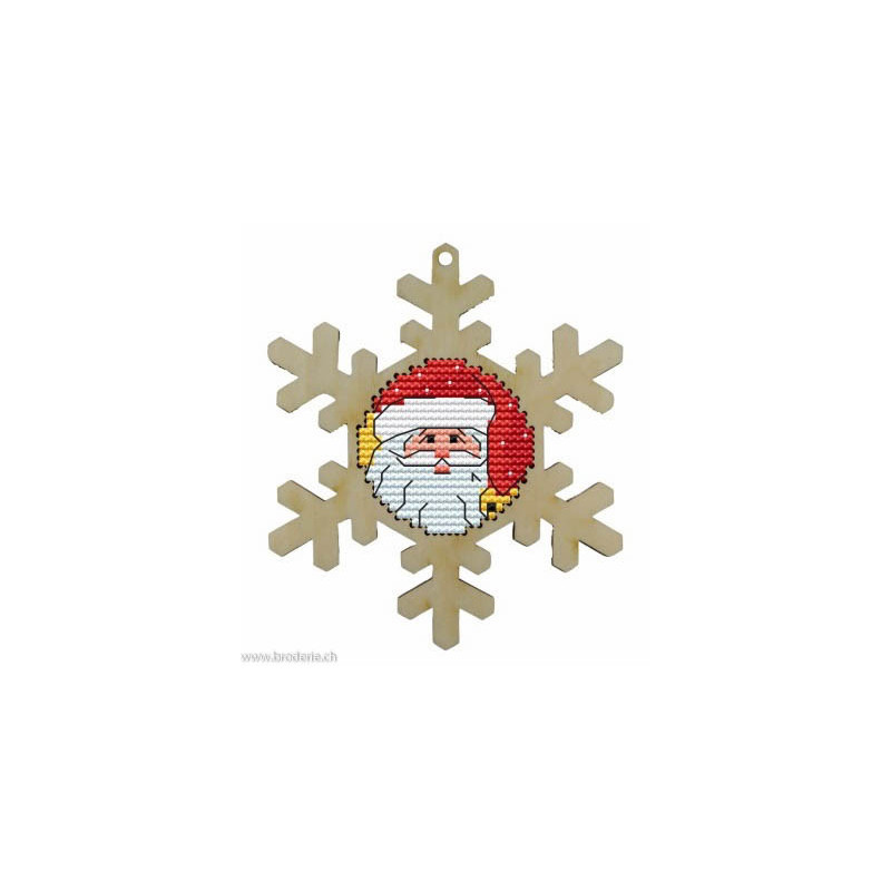 Wizardi, kit Kind fox - Snowflake - Santa (art. WDKF022-10-1). Dimensions: 8.5 x 10 cm. Broderie de points de croix comptés 5.5 points/cm sur support en bois, à pendre ou à poser. Dans la même collection WDKF0et numéro.