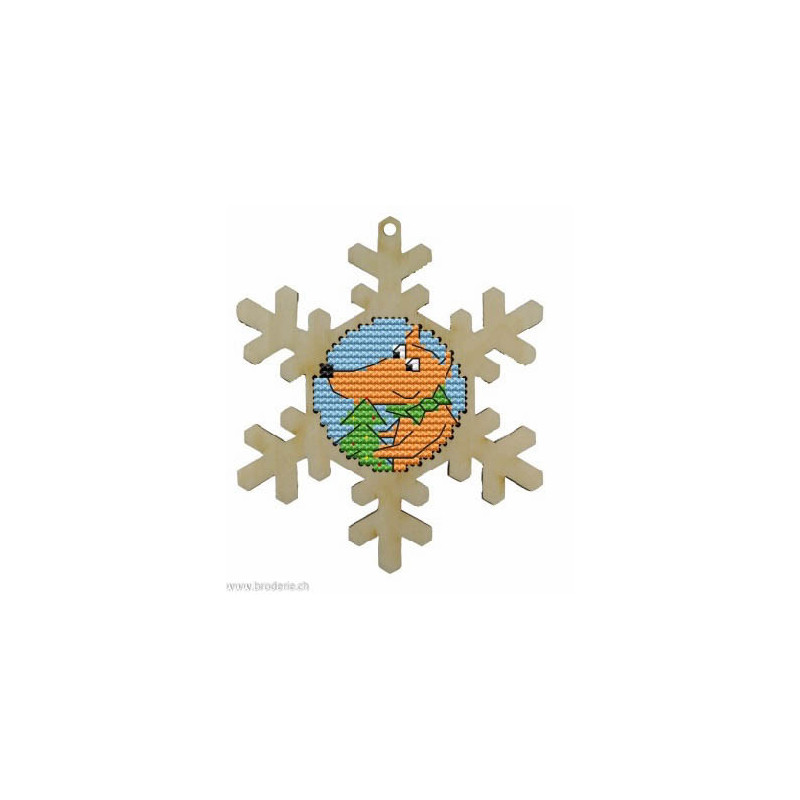 Wizardi, kit Kind fox - Snowflake - Fox (art. WDKF022-10-3). Dimensions: 8.5 x 10 cm. Broderie de points de croix comptés 5.5 points/cm sur support en bois, à pendre ou à poser. Dans la même collection WDKF0et numéro.