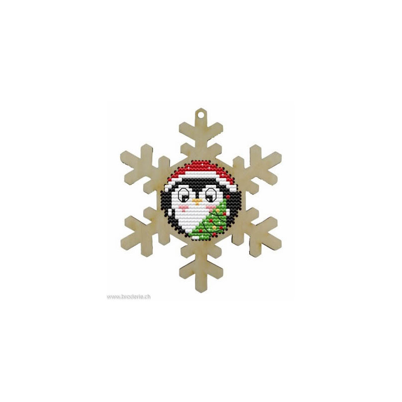 Wizardi, kit Kind fox - Snowflake - Penguin (art. WDKF022-10-5). Dimensions: 8.5 x 10 cm. Broderie de points de croix comptés 5.5 points/cm sur support en bois, à pendre ou à poser. Dans la même collection WDKF0et numéro.
