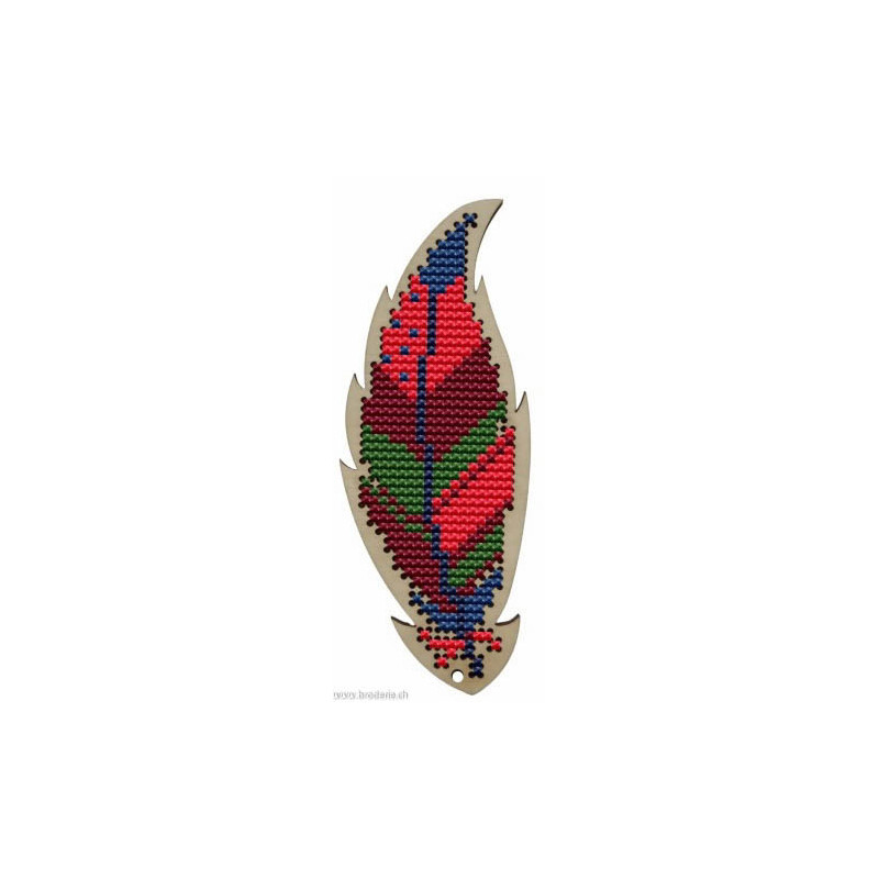 Wizardi, kit Kind Fox - Red Feather (art. WDKF022-45-4). Dimensions: 4.5 x 11 cm. Broderie de points de croix comptés 5.5 points/cm sur support en bois, à pendre ou à poser. Dans la même collection WDKF0et numéro.