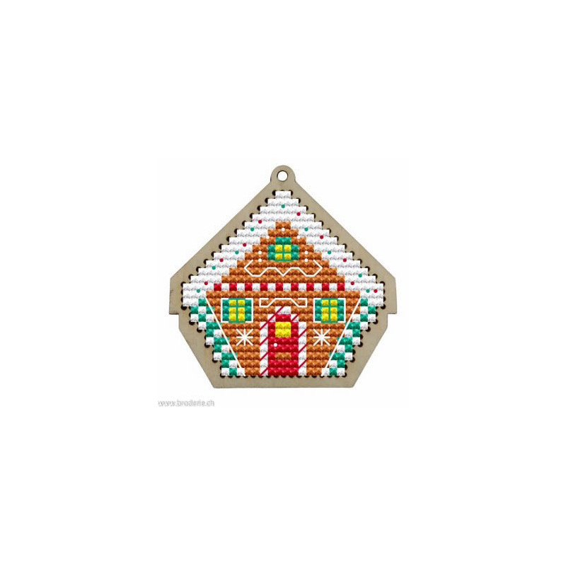 Wizardi, kit Kind Fox - Christmas Gingerbread house (art. WDKF022-12-2). Dimensions: 7 x 7 cm. Broderie de points de croix comptés 5.5 points/cm sur support en bois, à pendre ou à poser. Dans la même collection WDKF0et numéro.