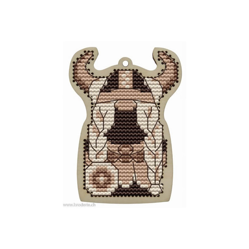 Wizardi, kit Kind Fox - Gnomes Viking (art. WDKF022-86). Dimensions: 6 x 8.5 cm. Broderie de points de croix comptés 5.5 points/cm sur support en bois, à pendre ou à poser. Dans la même collection WDKF0et numéro.