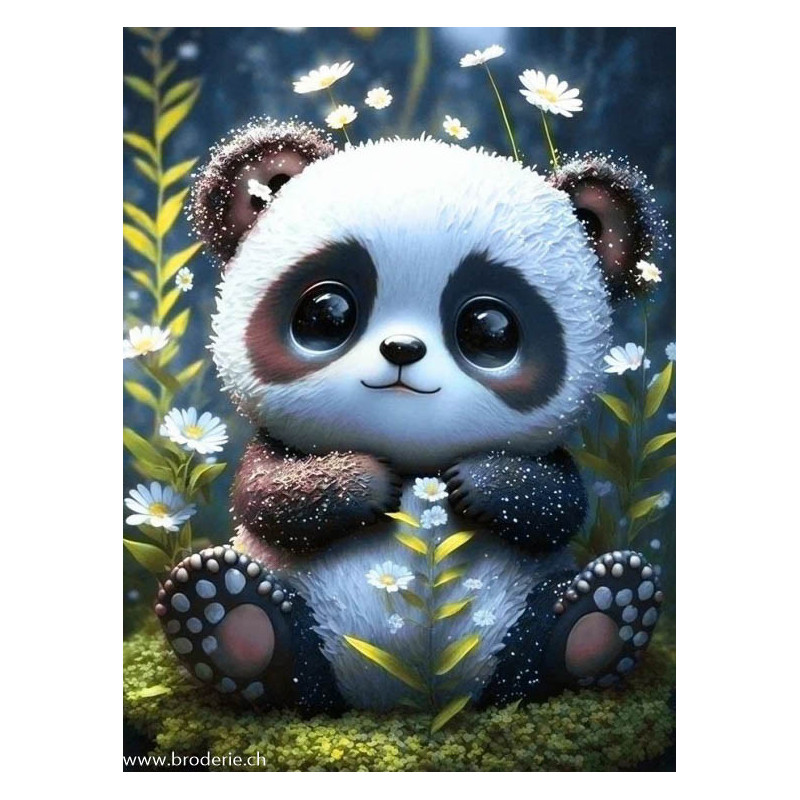 Wizardi, kit diamant Panda (art. WIWD3073). Dimensions: 30 x 40 cm. Kit complet de Broderie Diamant comprenant la toile adhésive imprimée à recouvrir de strass, les sachets de strass 'diamants' triés par couleurs, un stylet et sa cire, un réceptacle et les explications. La totalité de la surface est à recouvrir. ATTENTION, ce n'est pas une broderie, pas de fil ni d'aiguille, mais une mosaïque.