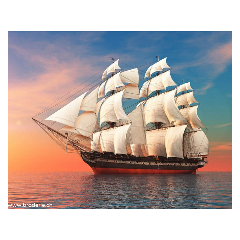 Wizardi, kit diamant Ship in the sea (art. WIWD3050). Dimensions: 50 x 40 cm. Kit complet de Broderie Diamant comprenant la toile adhésive imprimée à recouvrir de strass, les sachets de strass 'diamants' triés par couleurs, un stylet et sa cire, un réceptacle et les explications. La totalité de la surface est à recouvrir. ATTENTION, ce n'est pas une broderie, pas de fil ni d'aiguille, mais une mosaïque.
