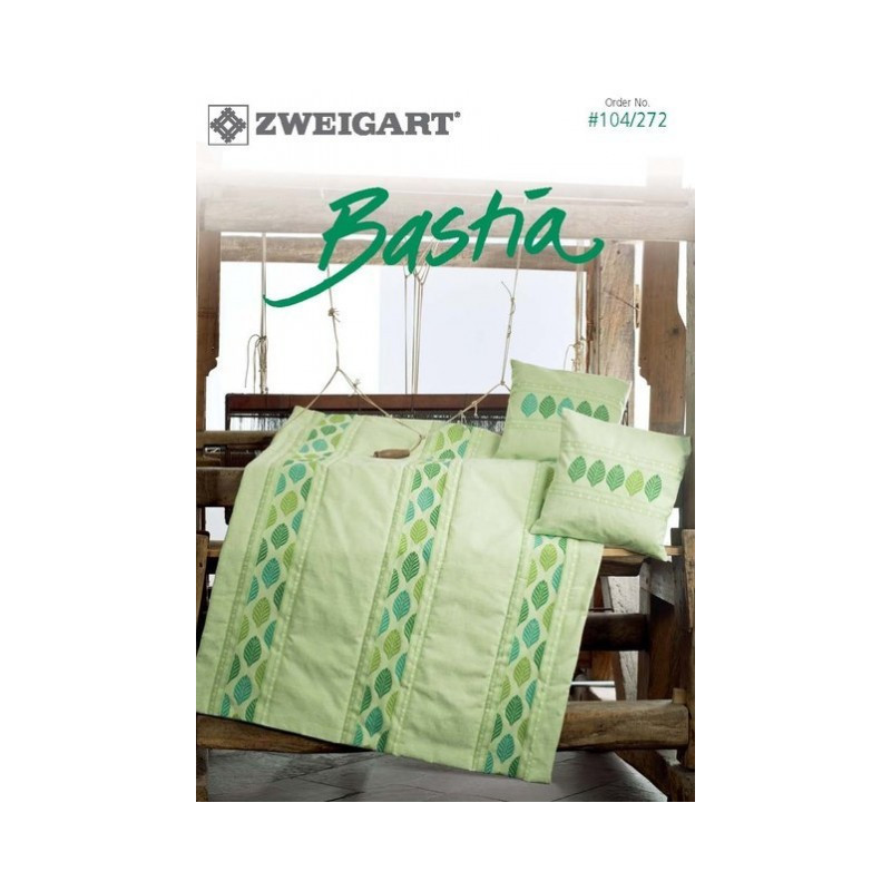 Zweigart, catalogue de modèles Bastia (art. 104-272). Points utilisés: point de croix. catalogue de 15 pages, tissu bastia, peut être commandé, à 45 francs le mètre , coloris à choix, vert, rouge, gris ou beige, article 1379-17 en commande.