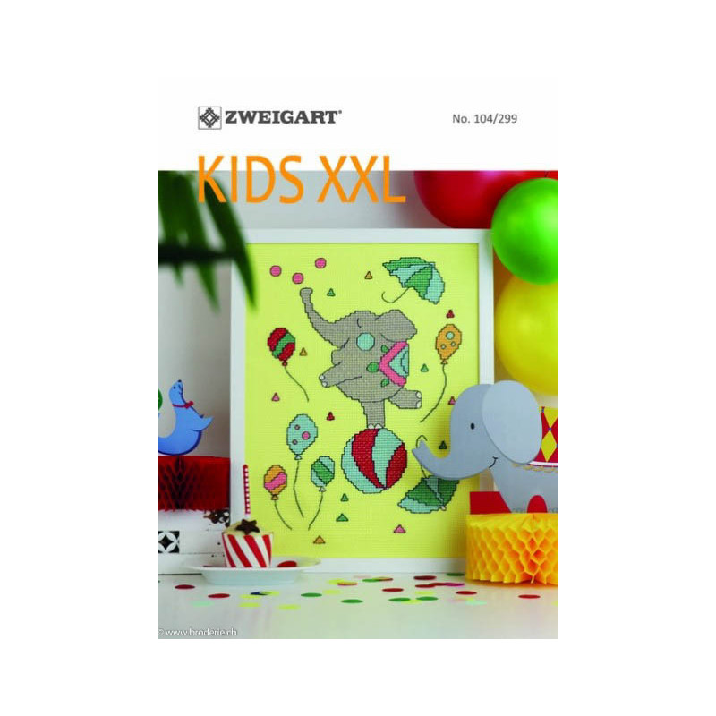 Zweigart, catalogue de modèles Kids XXL (art. 104-299). Catalogue de 24 pages avec des modèles simples pour commencer le point de croix, ideal sur les trames 1006 et év 3706.